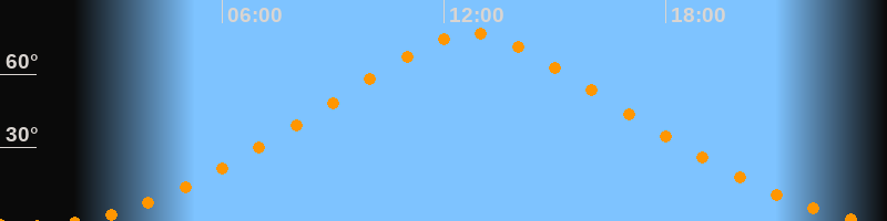 | Höchster Stand (Kulmination) | 12:45 Uhr (h = 76,7°) |