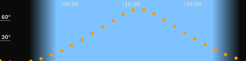 | Höchster Stand (Kulmination) | 13:33 Uhr (h = 76,7°) |