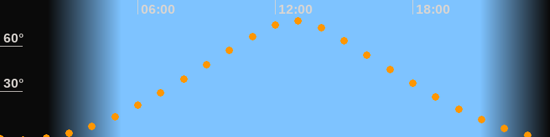 | Höchster Stand (Kulmination) | 12:50 Uhr (h = 76,7°) |