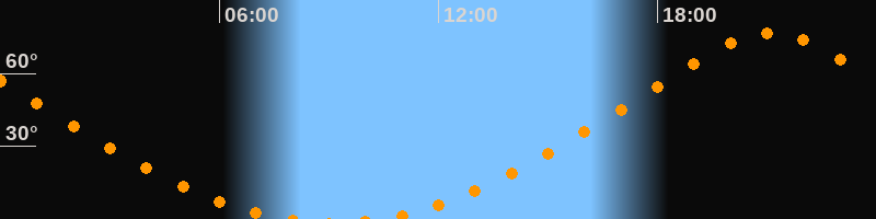 | Aufgang | 10:16 Uhr im Norden (αAz = 13,6°) |
