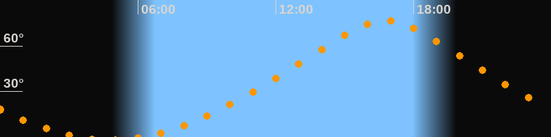 | Höchster Stand (Kulmination) | 16:46 Uhr (h = 76,7°) |