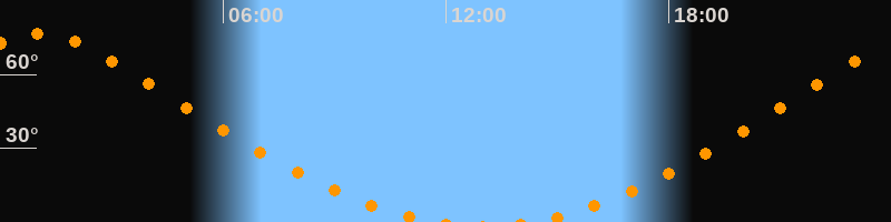 Höchster Stand (Kulmination)01:02 Uhr (h = 76,7°)