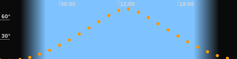 | Höchster Stand (Kulmination) | 12:49 Uhr (h = 76,7°) |