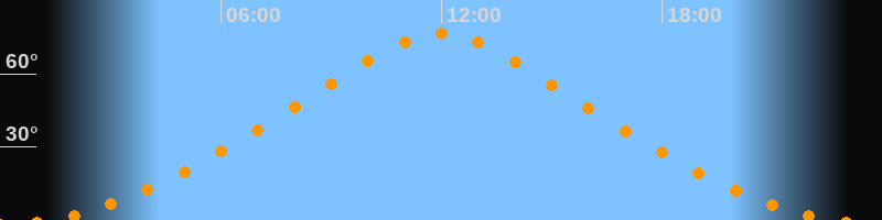 | Höchster Stand (Kulmination) | 11:58 Uhr (h = 76,7°) |