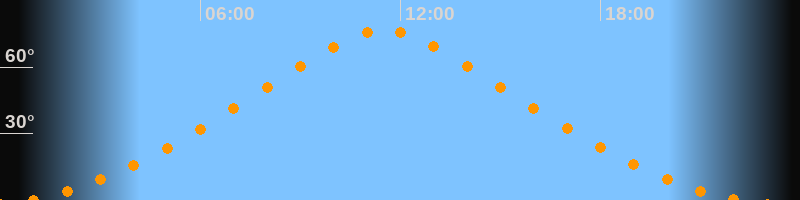 | Höchster Stand (Kulmination) | 11:30 Uhr (h = 76,7°) |