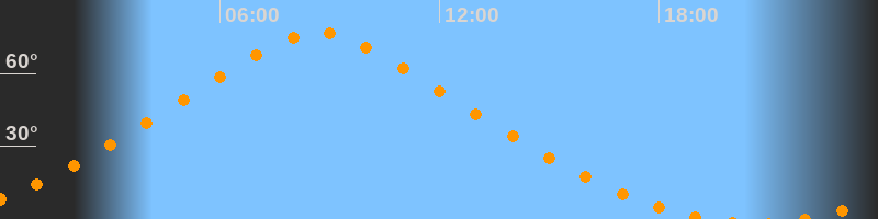 | Höchster Stand (Kulmination) | 08:41 Uhr (h = 76,7°) |