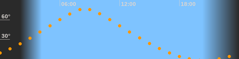 | Höchster Stand (Kulmination) | 08:30 Uhr (h = 76,7°) |