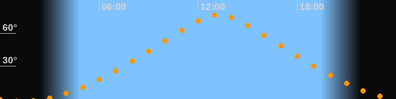 | Höchster Stand (Kulmination) | 13:14 Uhr (h = 76,7°) |