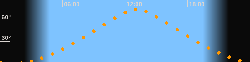 | Höchster Stand (Kulmination) | 13:07 Uhr (h = 76,7°) |