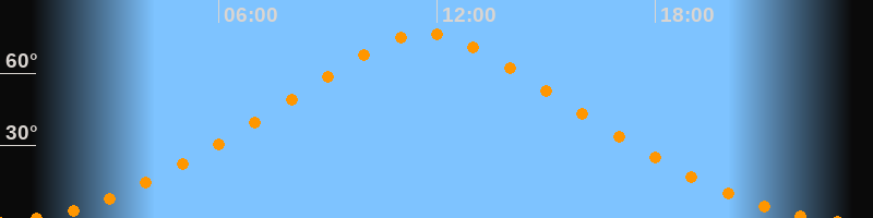 | Höchster Stand (Kulmination) | 11:40 Uhr (h = 76,7°) |