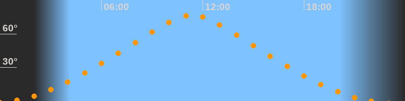 | Höchster Stand (Kulmination) | 11:20 Uhr (h = 76,7°) |