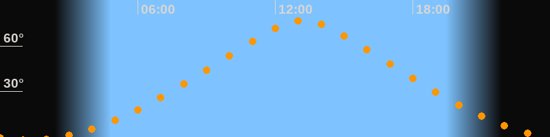 | Höchster Stand (Kulmination) | 13:11 Uhr (h = 76,7°) |