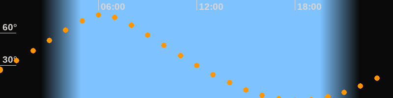 | Höchster Stand (Kulmination) | 06:15 Uhr (h = 76,7°) |