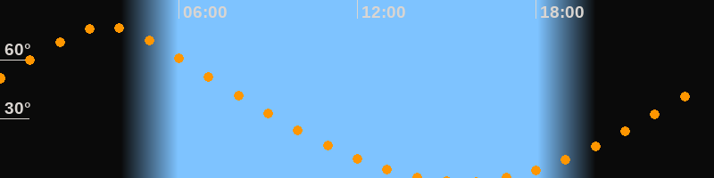 | Aufgang | 16:40 Uhr im Norden (αAz = 13,6°) |