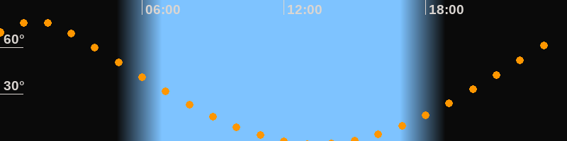| Aufgang | 14:34 Uhr im Norden (αAz = 13,6°) |