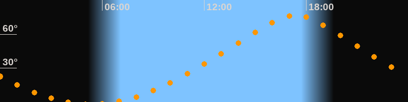 | Höchster Stand (Kulmination) | 17:20 Uhr (h = 76,7°) |