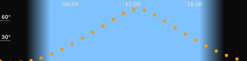 | Höchster Stand (Kulmination) | 13:20 Uhr (h = 76,7°) |