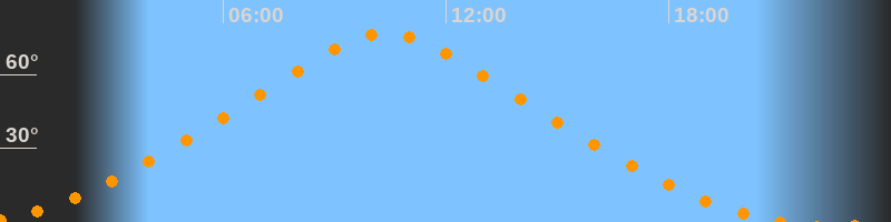 | Höchster Stand (Kulmination) | 10:23 Uhr (h = 76,7°) |