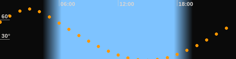 | Aufgang | 16:02 Uhr im Norden (αAz = 13,6°) |