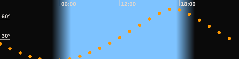 | Höchster Stand (Kulmination) | 17:25 Uhr (h = 76,7°) |