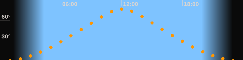 | Höchster Stand (Kulmination) | 12:02 Uhr (h = 76,7°) |