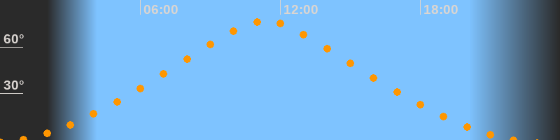 | Höchster Stand (Kulmination) | 11:22 Uhr (h = 76,7°) |