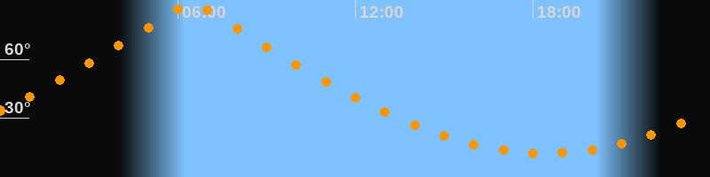 | Höchster Stand (Kulmination) | 06:28 Uhr (h = 89,3°) |