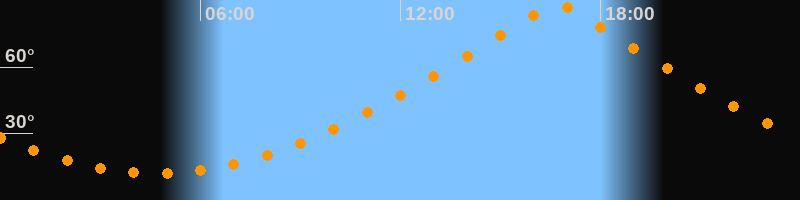 | Höchster Stand (Kulmination) | 16:41 Uhr (h = 89,3°) |
