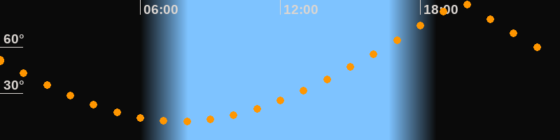 | Höchster Stand (Kulmination) | 19:44 Uhr (h = 89,3°) |