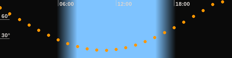 | Höchster Stand (Kulmination) | 22:41 Uhr (h = 89,3°) |