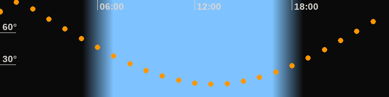 | Höchster Stand (Kulmination) | 01:09 Uhr (h = 89,3°) |