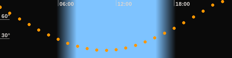 | Höchster Stand (Kulmination) | 22:47 Uhr (h = 89,3°) |