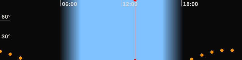 Aufgang18:44 Uhr im Südosten (αAz = 129,3°)