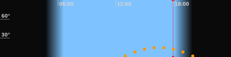 Aufgang18:09 Uhr im Südosten (αAz = 129,3°)