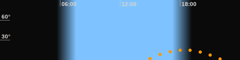 Aufgang14:35 Uhr im Südosten (αAz = 129,3°)