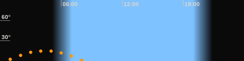 Untergang08:15 Uhr im Südwesten (αAz = 230,7°)
