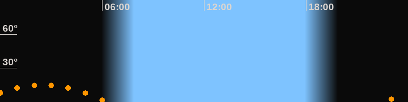 Aufgang22:33 Uhr im Südosten (αAz = 129,3°)