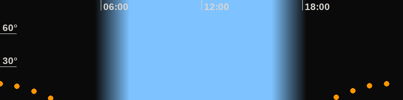Untergang03:18 Uhr im Südwesten (αAz = 230,7°)