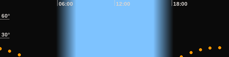 Aufgang18:49 Uhr im Südosten (αAz = 129,3°)