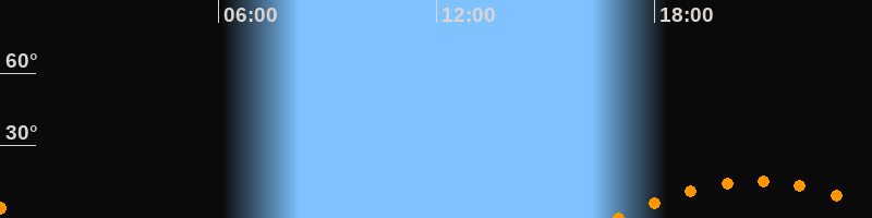 Untergang00:39 Uhr im Südwesten (αAz = 230,7°)