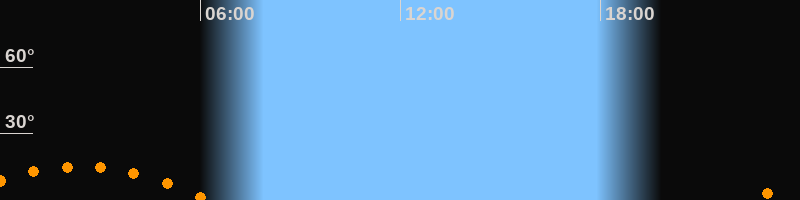 Aufgang22:28 Uhr im Südosten (αAz = 129,3°)