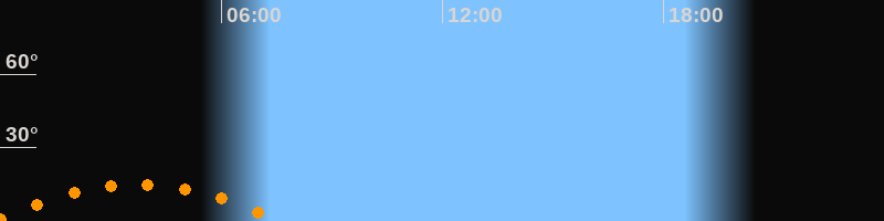 Aufgang23:48 Uhr im Südosten (αAz = 129,3°)