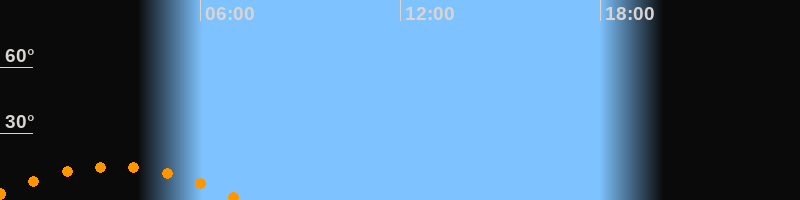 Aufgang23:29 Uhr im Südosten (αAz = 129,3°)