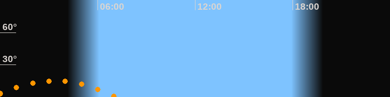 Aufgang23:25 Uhr im Südosten (αAz = 129,3°)