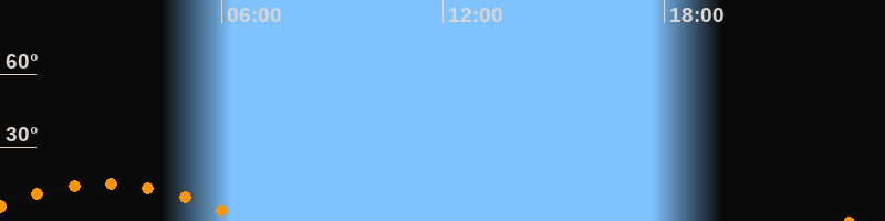 Untergang06:43 Uhr im Südwesten (αAz = 230,7°)