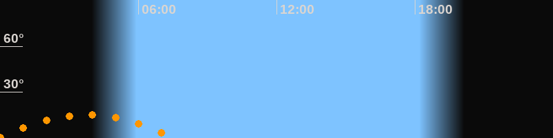 Aufgang23:50 Uhr im Südosten (αAz = 129,3°)