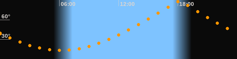 | Höchster Stand (Kulmination) | 18:08 Uhr (h = 88,1°) |