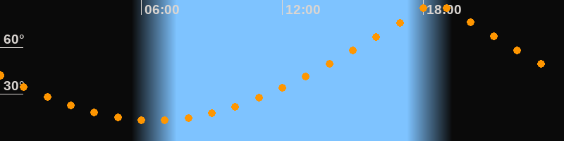 | Höchster Stand (Kulmination) | 18:30 Uhr (h = 88,1°) |