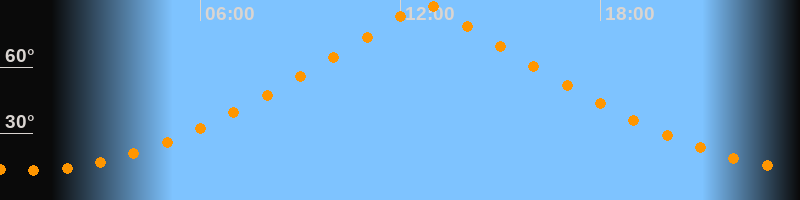| Höchster Stand (Kulmination) | 12:45 Uhr (h = 88,1°) |