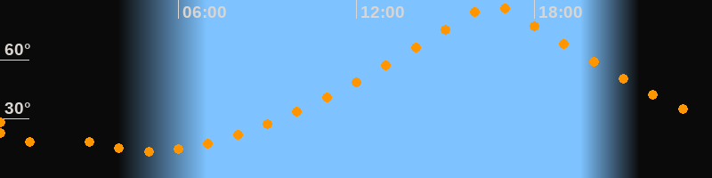 | Höchster Stand (Kulmination) | 16:35 Uhr (h = 88,1°) |